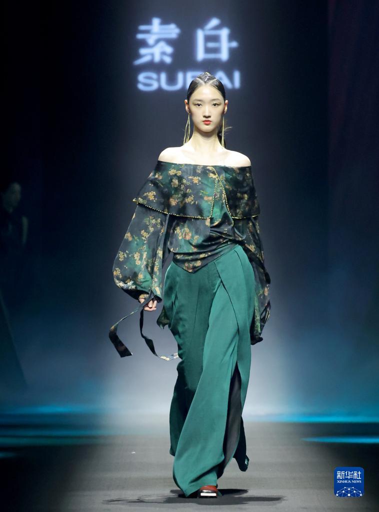 當日,“素白·馬乖”時裝發布會在北京中國國際時裝周(2023春夏系列)舉行。設計師推出50套用傳統“天然桑蠶絲織物”、具有古舊香云紗質感的環保面料等制作的時裝。