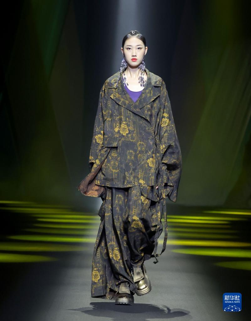 當日,“素白·馬乖”時裝發布會在北京中國國際時裝周(2023春夏系列)舉行。設計師推出50套用傳統“天然桑蠶絲織物”、具有古舊香云紗質感的環保面料等制作的時裝。