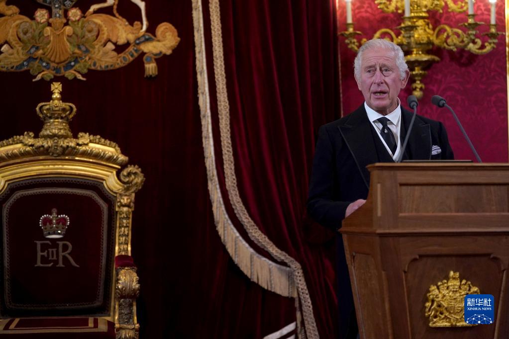 英國登基委員會10日在位于倫敦的圣詹姆斯宮正式宣告查爾斯三世為英國君主。這是查爾斯三世在儀式上。新華社/美聯(lián)