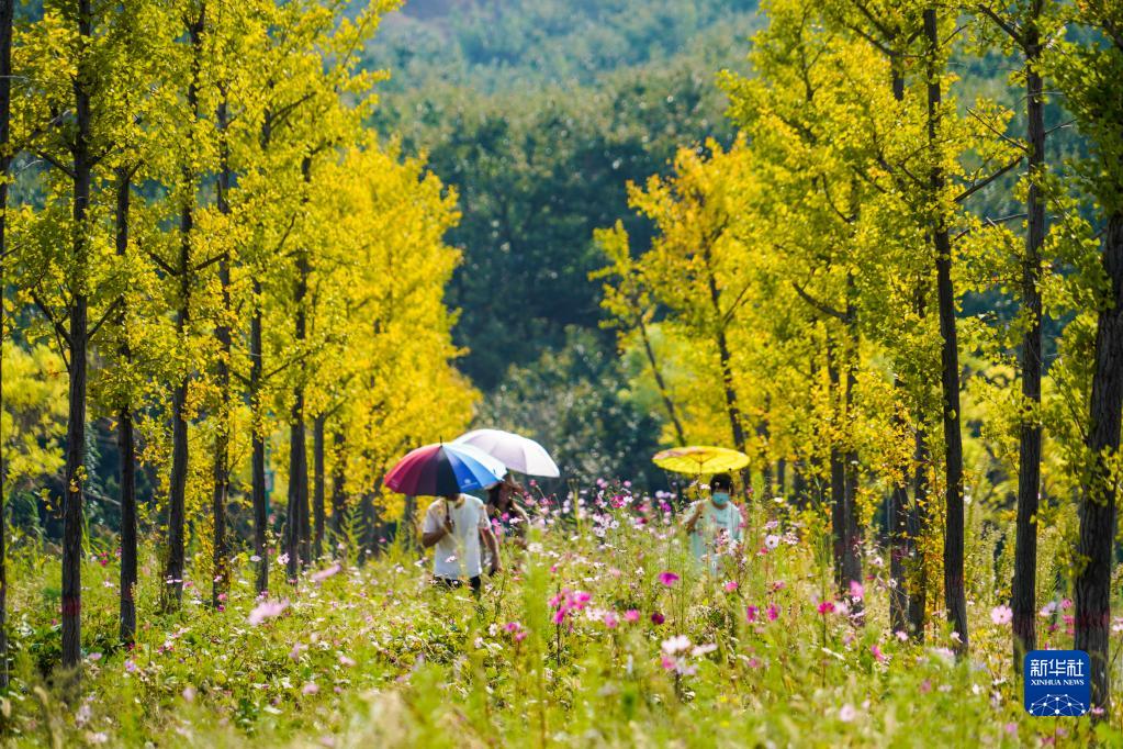 9月11日,游客在河北省遵化市一處花海游玩。新華社發(劉滿倉 攝)