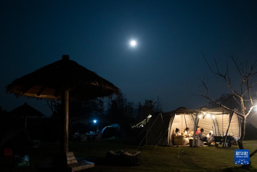 9月10日晚,游客在重慶市南川區(qū)黎香湖星空露營基地露營。新華社發(fā)(瞿明斌 攝)