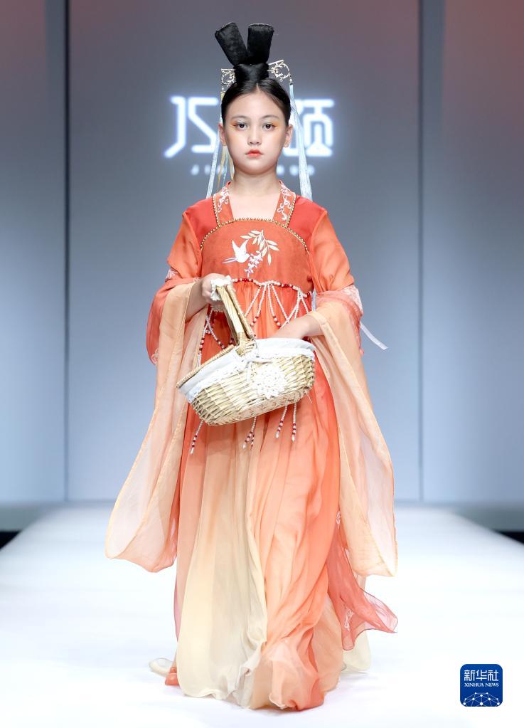 9月11日,模特在在北京中國國際時裝周(2023春夏系列)舉行的“JS·蔣碩”童裝發布會上展示設計師蔣碩設計的童裝。
