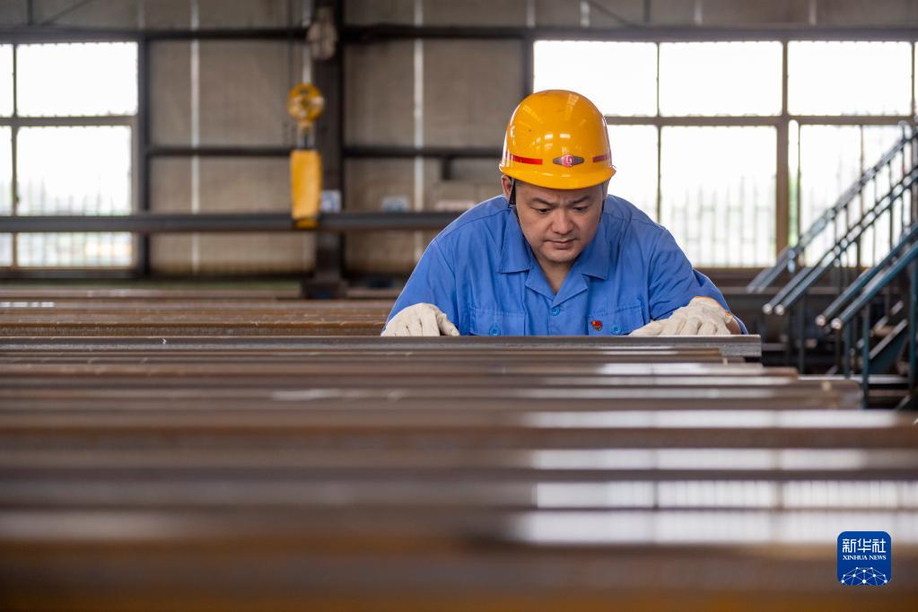 羅宇航在鄭州工務機械段焊軌車間測量鋼軌除銹寬度(9月9日攝)。