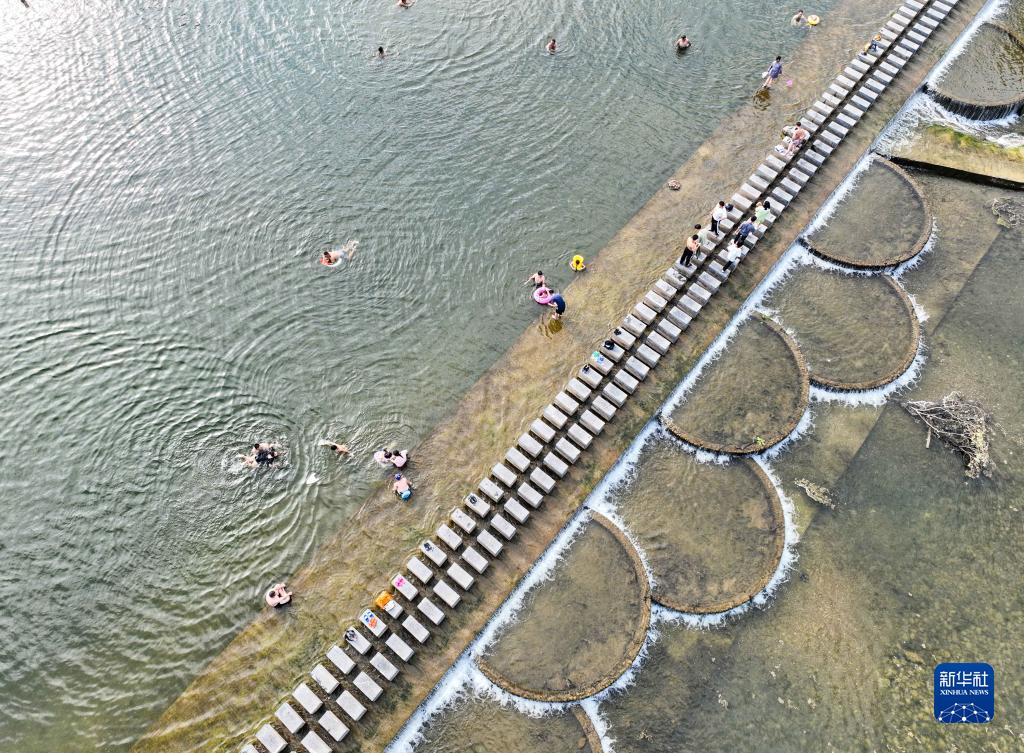 9月11日,游客在湖南省永州市道縣梅花鎮貴頭村游玩(無人機照片)。