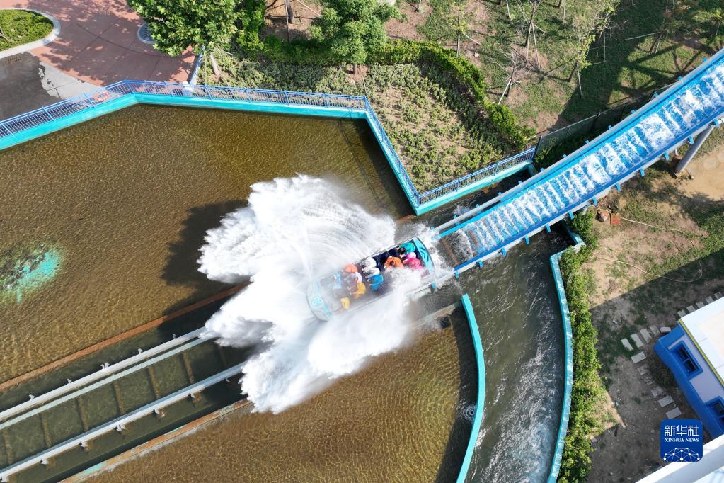 9月11日,游客在江蘇淮安方特東方欲曉游玩(無人機(jī)照片)。