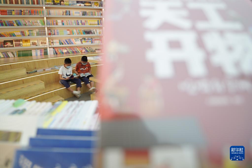 9月11日,小朋友在河北省邢臺市內丘縣新華書店閱讀圖書。