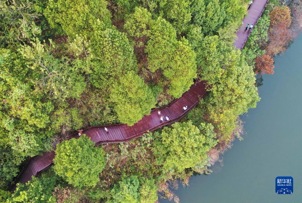9月11日,人們?cè)谫F州省遵義市正安縣北郊湖公園游玩。