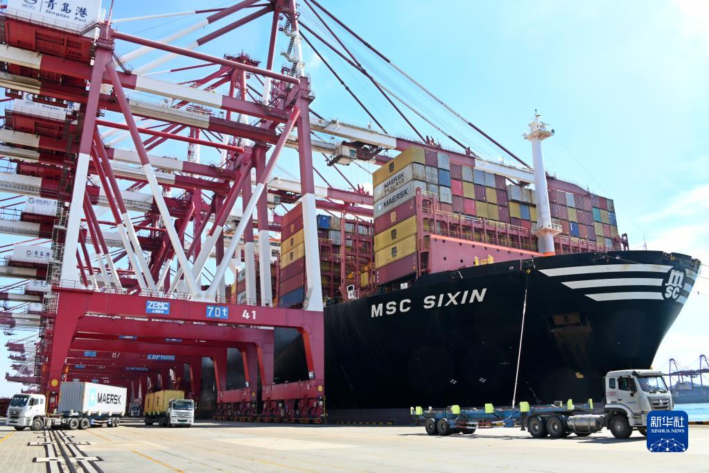 “地中海思辛”輪創(chuàng)青島港今年單船最大作業(yè)量(9月10日攝)。