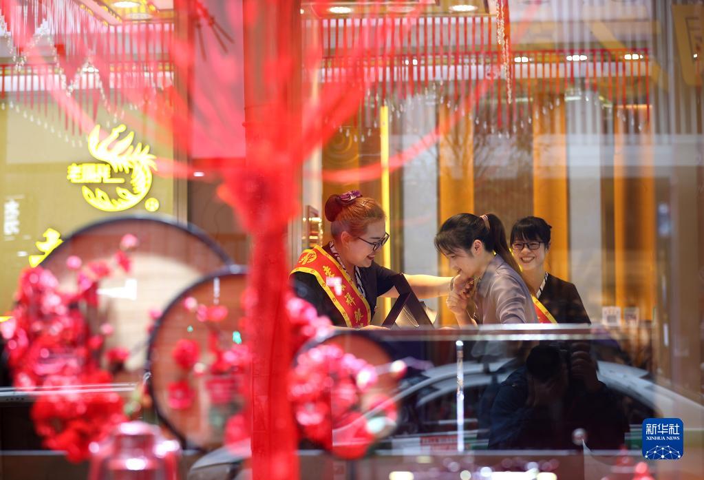 9月11日,顧客在貴州省黔東南苗族侗族自治州丹寨縣一家金店選購首飾。新華社發(fā)(黃曉海 攝)
