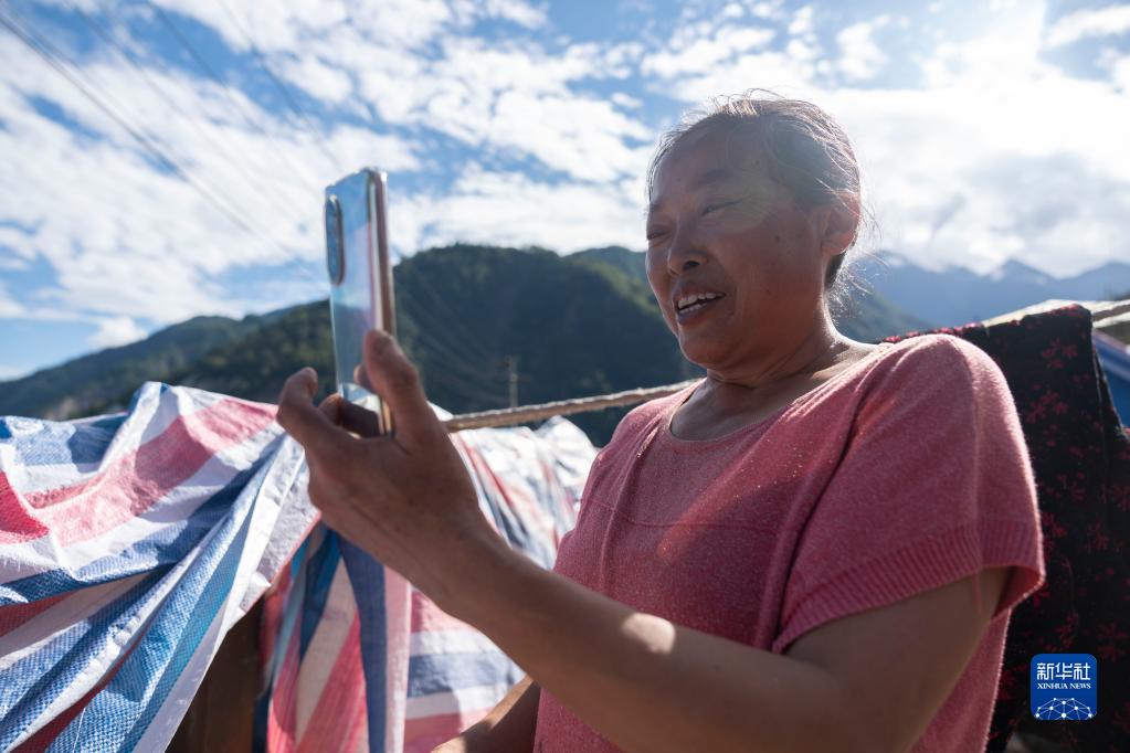 9月10日,在四川省石棉縣幸福村,村民用手機(jī)與家人視頻通話。