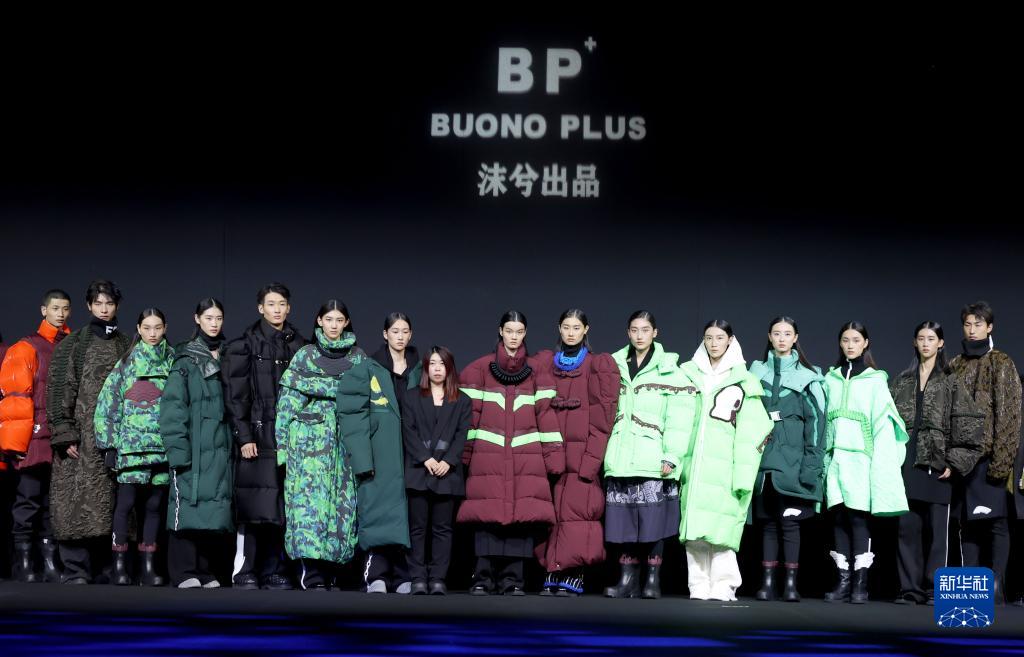 9月11日,設(shè)計師姜佳(中)和模特在北京中國國際時裝周(2023春夏系列)舉行的“BUONO PLUS·姜佳”時裝發(fā)布會上謝幕。