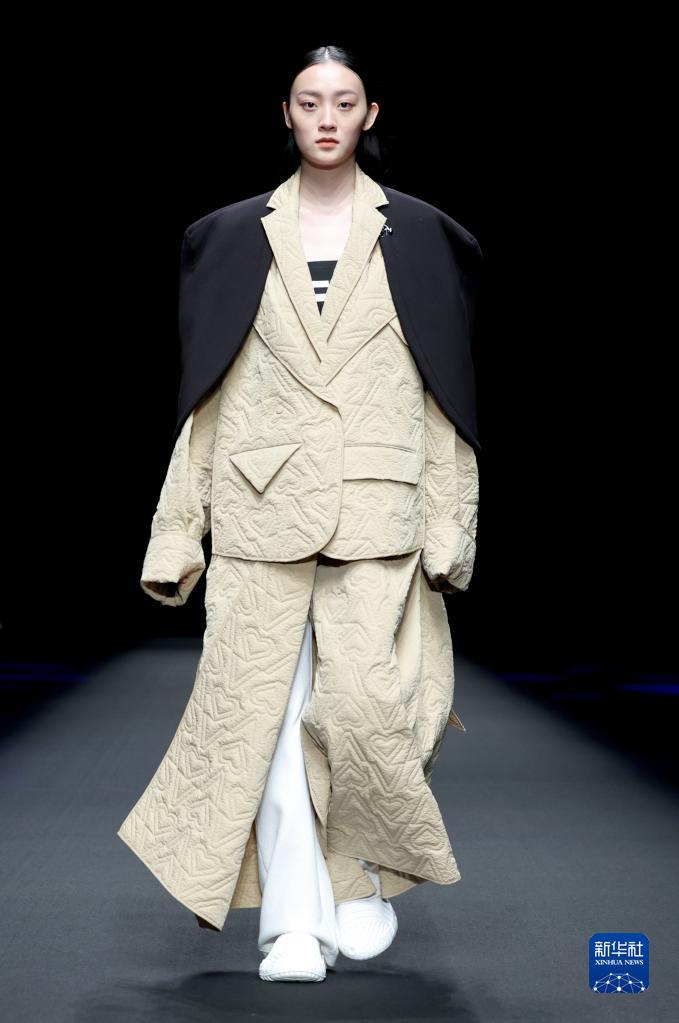 9月11日,模特在北京中國國際時裝周(2023春夏系列)舉行的“BUONO PLUS·姜佳”時裝發布會上展示設計師姜佳設計的羽絨系列服裝。