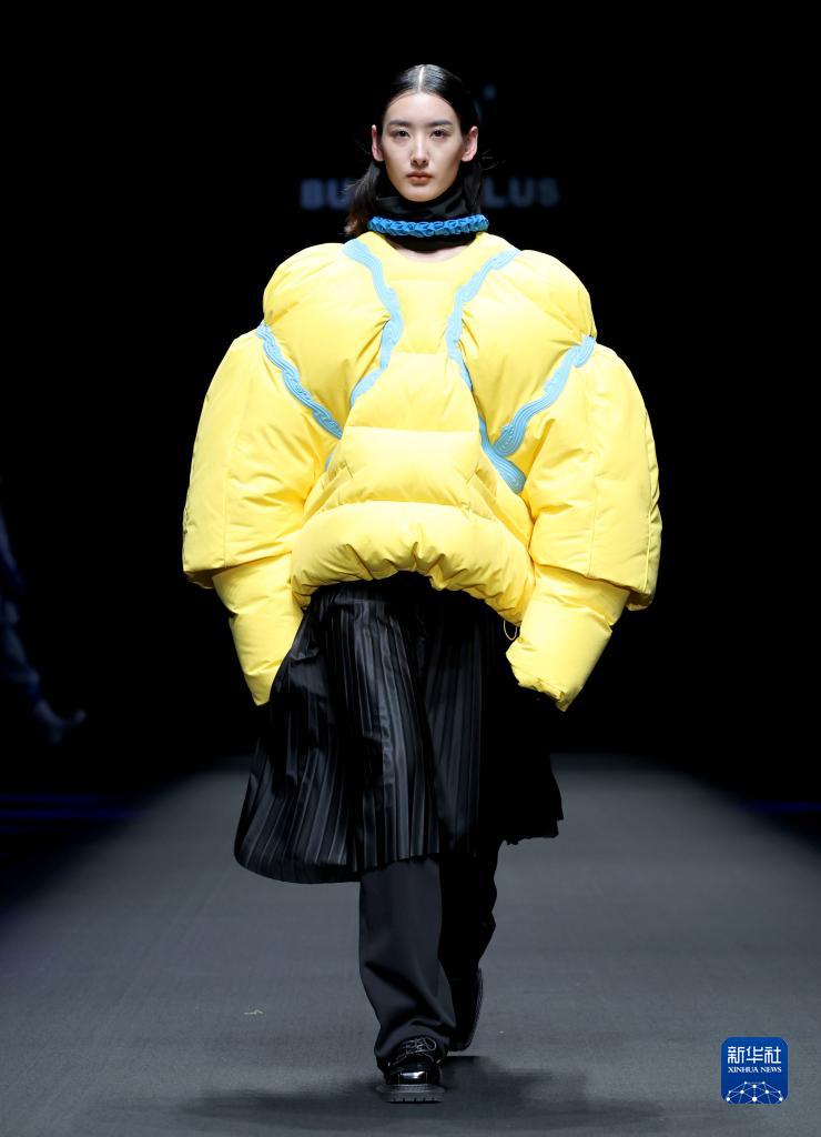 9月11日,模特在北京中國國際時裝周(2023春夏系列)舉行的“BUONO PLUS·姜佳”時裝發布會上展示設計師姜佳設計的羽絨系列服裝。