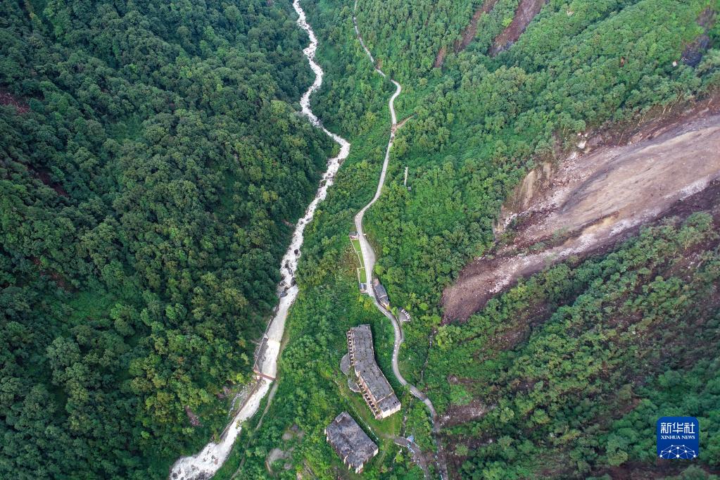 這是9月7日拍攝的海螺溝景區(qū)一號營地附近的崩塌災害現(xiàn)場(右側部分)(無人機照片)。