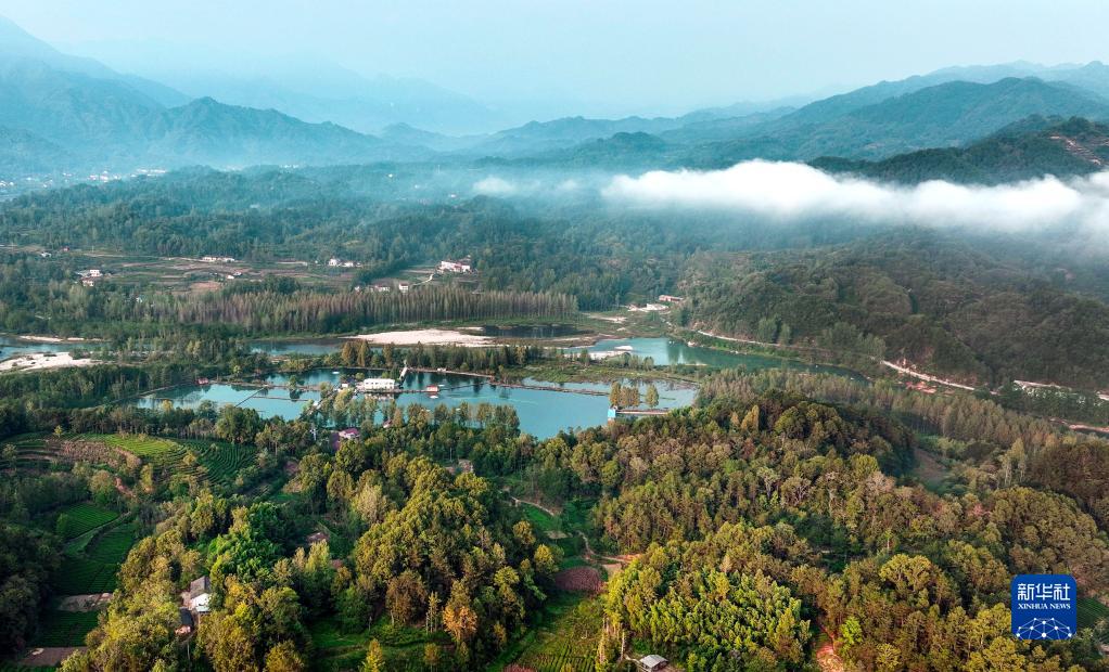 9月12日拍攝的云霧繚繞的西鄉縣峽口鎮山林與茶園(無人機照片)。