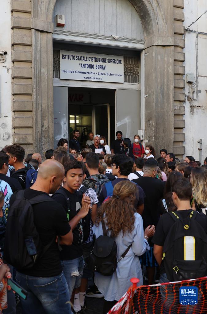 9月12日,意大利那不勒斯一所中學(xué)的學(xué)生等待進(jìn)入校園。