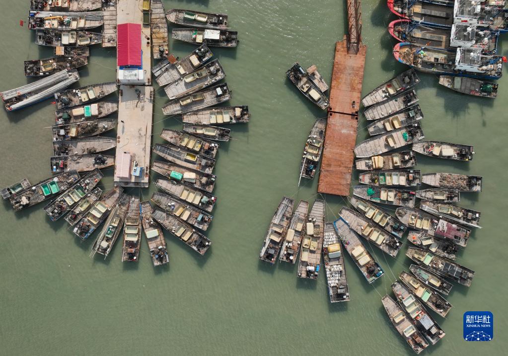 9月13日,江蘇省連云港市高公島國家一級漁港內,漁船進港避風(無人機照片)。