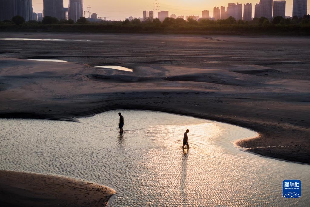 近日,長江武漢段水位持續消退,大片灘涂露出江面,天興洲北岸幾乎與漢口江岸連成一片。截至9月13日22時,長江漢口站水位為13.58米,較歷史同期均值偏低逾8米。