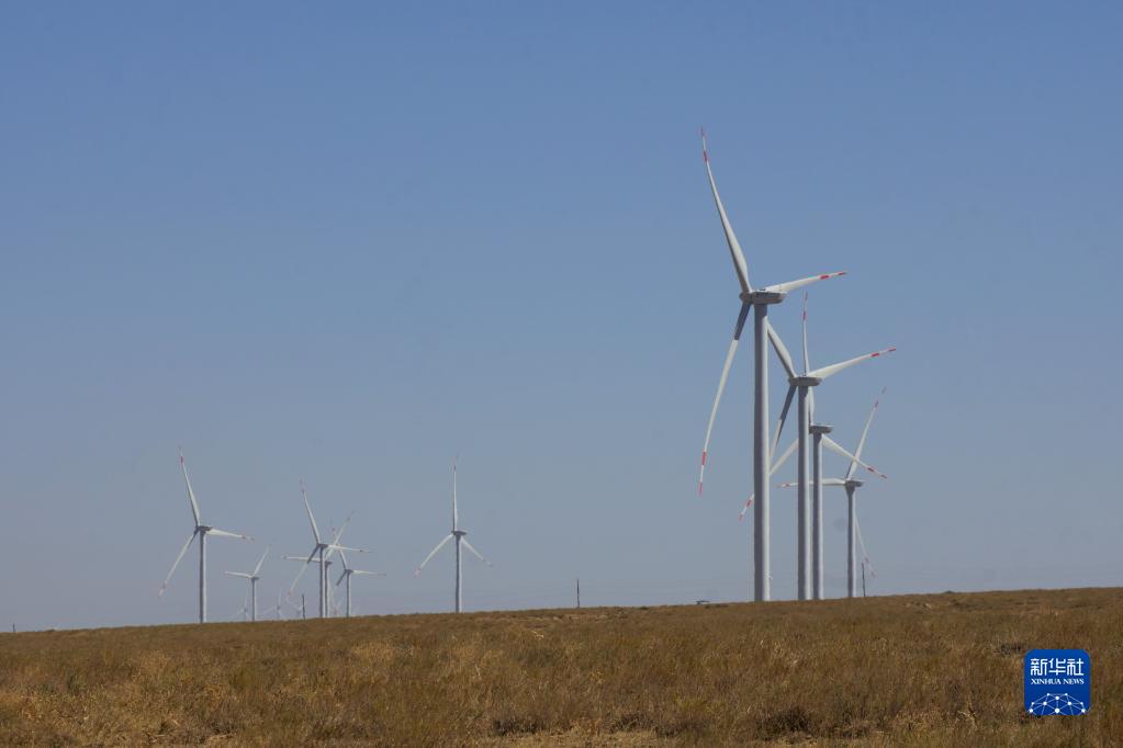這是9月13日在哈薩克斯坦扎納塔斯拍攝的扎納塔斯風電場風機。新華社發(fā)(德米特里·瓦西連科 攝)