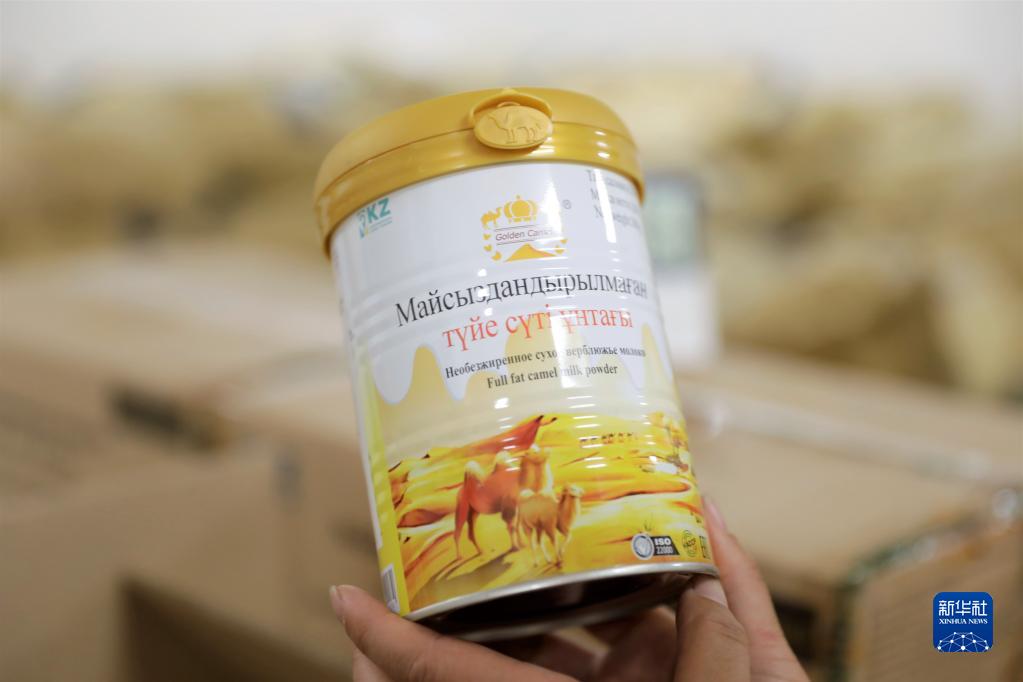這是8月13日在位于哈薩克斯坦南部城市圖爾克斯坦的哈薩克斯坦金駱駝集團(tuán)有限公司的駝乳粉加工廠拍攝的全脂駝乳粉產(chǎn)品。新華社發(fā)(奧斯帕諾夫 攝)