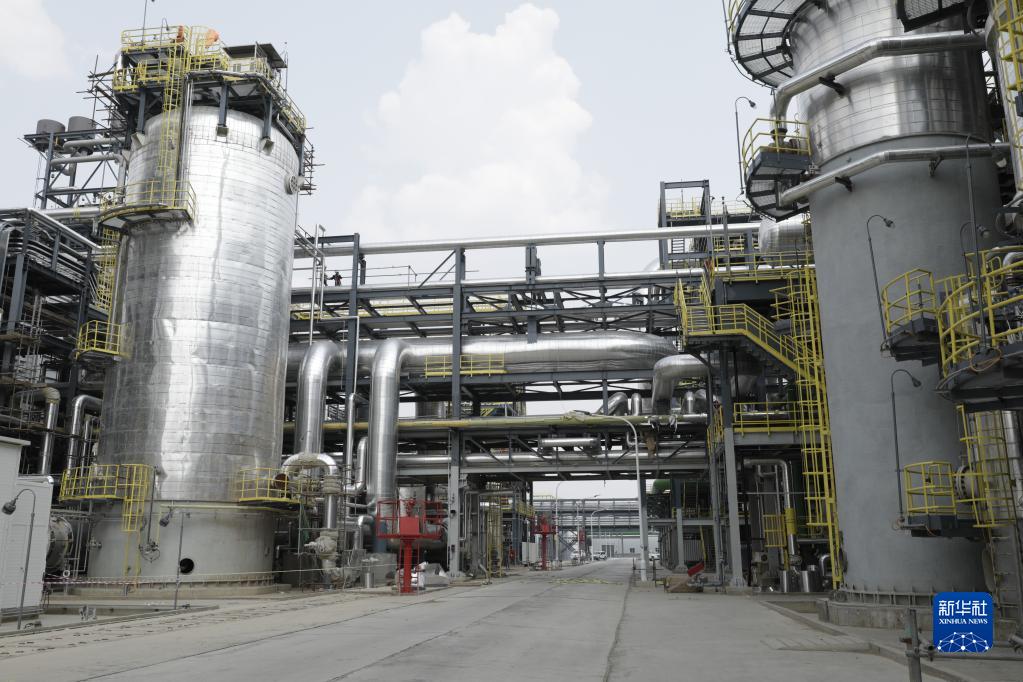 這是8月9日在哈薩克斯坦阿特勞州拍攝的由中國化學工程集團有限公司總包建設的哈薩克斯坦石油化工綜合體項目。新華社發(奧斯帕諾夫 攝)