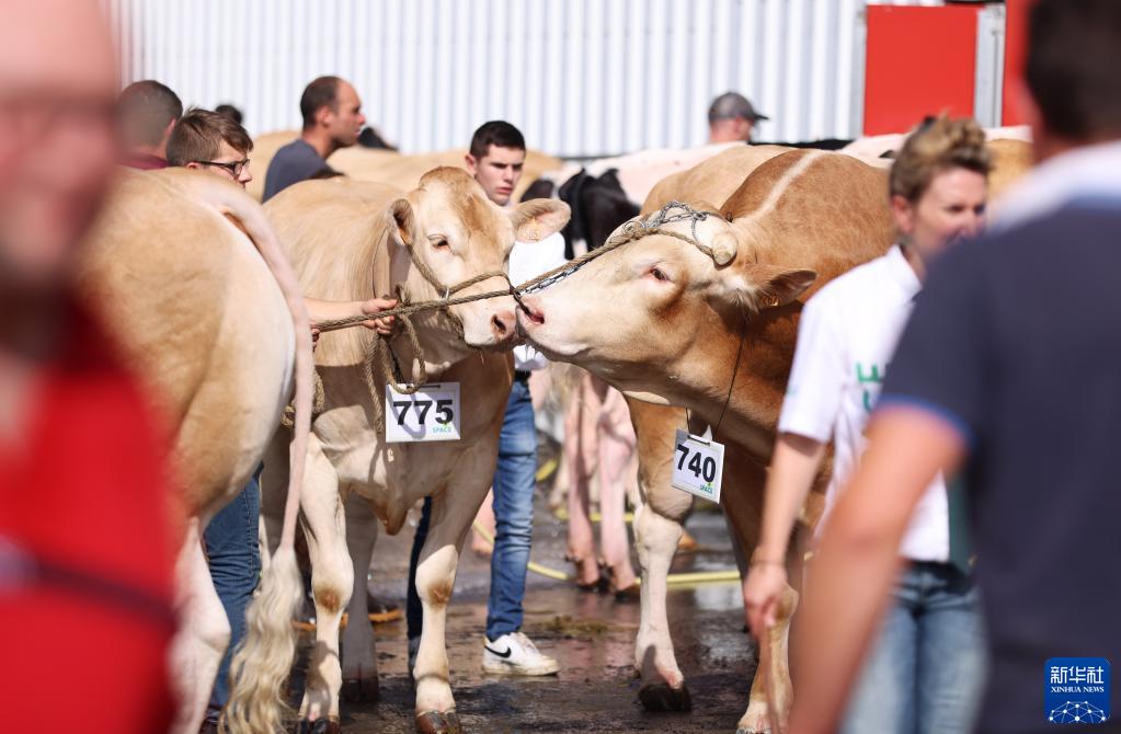 9月13日,在法國雷恩畜牧業展覽會上,參展商牽牛去參加比賽。