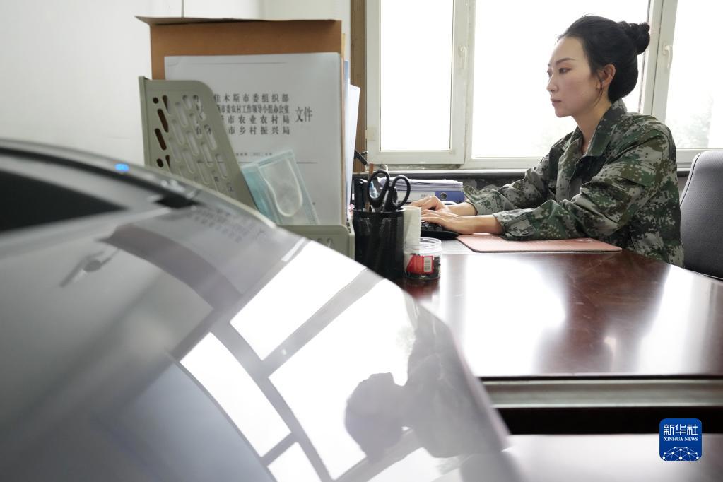 9月7日,尚美含在烏蘇鎮政府辦公室內辦公。