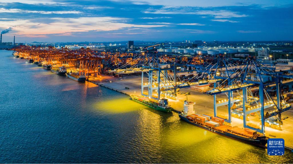華燈初上的欽州港(2022年9月13日攝,無人機(jī)照片)。