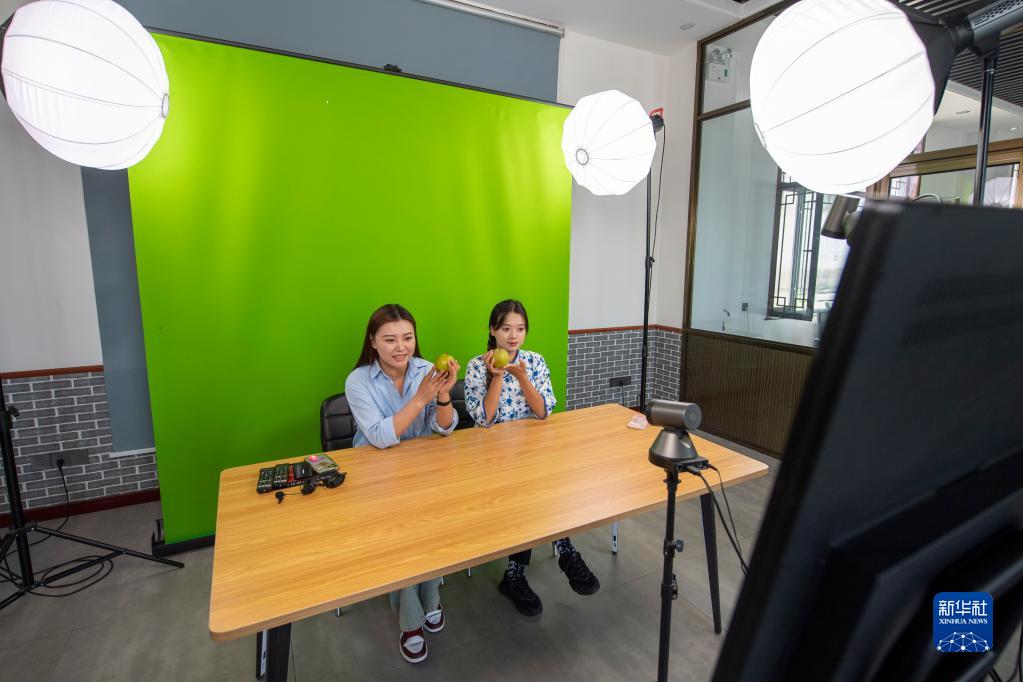 9月14日,修善村電商團(tuán)隊(duì)的主播在進(jìn)行線上直播銷售。