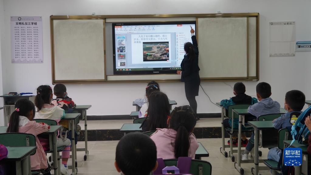 9月14日,老師在瀘定縣二郎山片區(qū)寄宿制學(xué)校給學(xué)生講述抗震救災(zāi)情況。