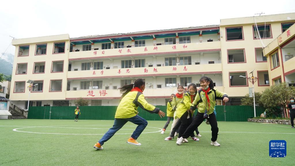 9月14日,學生在瀘定縣得妥鎮中心小學參加課間活動。