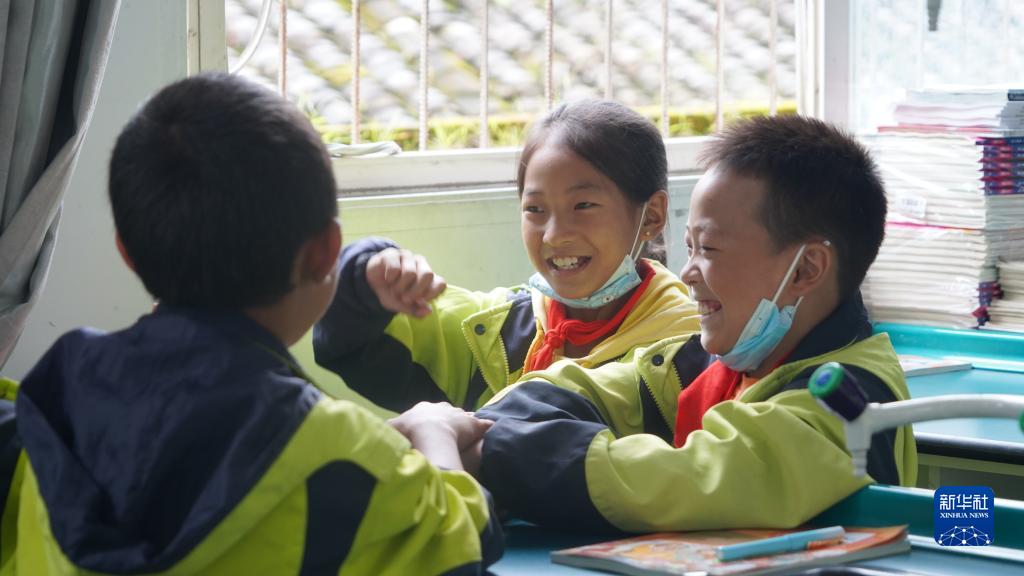 9月14日,學生在瀘定縣得妥鎮中心小學做游戲。