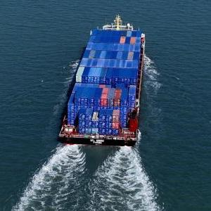 9月15日,“沃德菲寧波”號集裝箱輪行駛在海上(無人機照片)。
