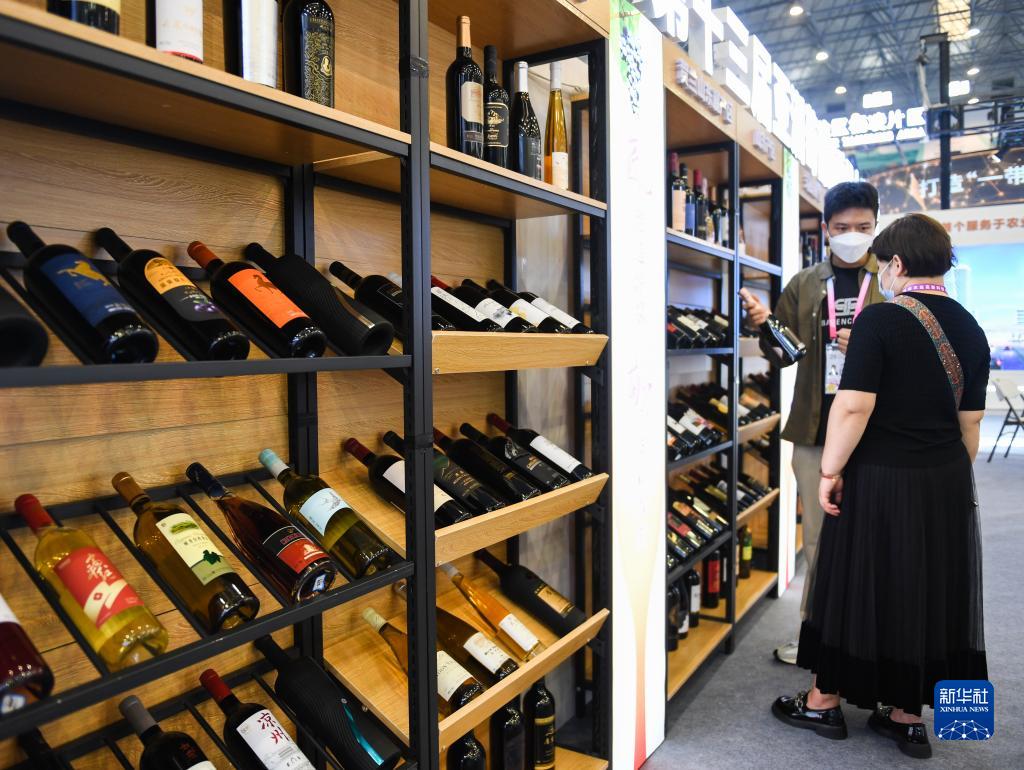 9月15日,參觀者在亞洲葡萄酒展區了解商品。