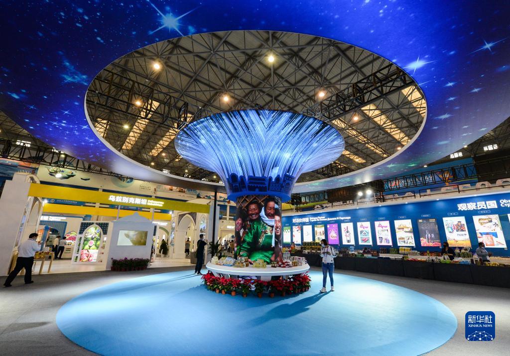 9月15日,參觀者在農業(yè)科技與糧食安全國際交流合作展館了解特色商品。