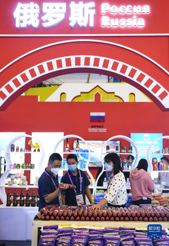 9月15日,參觀者在上合組織國家農業展了解俄羅斯特色農產品。