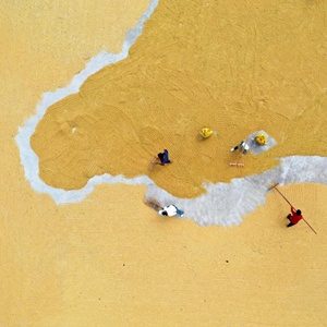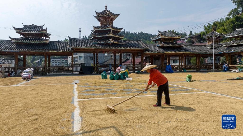 仲秋時節,農民利用晴好天氣晾曬收獲的農作物,鄉間一派豐收的圖景。