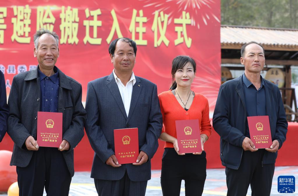 9月15日,甘肅省武威市祁連鎮搬遷群眾代表拿到不動產權證書。