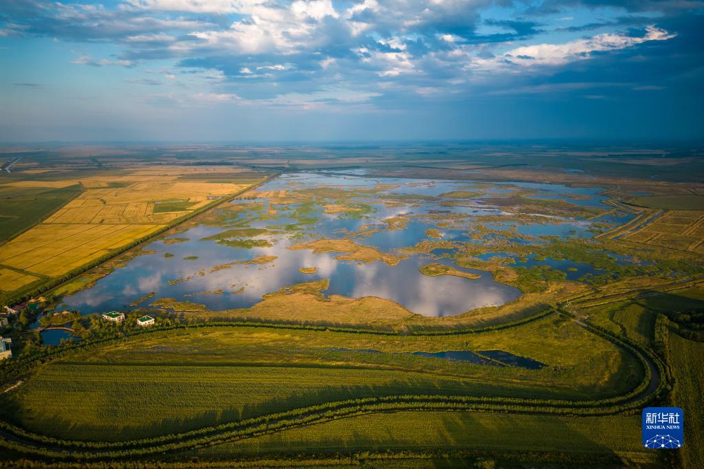 這是9月7日拍攝的富錦國(guó)家濕地公園風(fēng)景(無(wú)人機(jī)照片)。