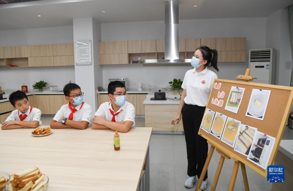 9月14日,重慶謝家灣學校學生在學習烹飪。