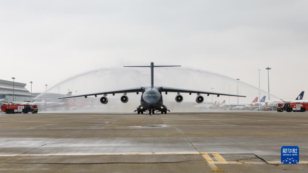 9月16日,在沈陽桃仙國際機場,運送志愿軍烈士遺骸的空軍專機通過水門。