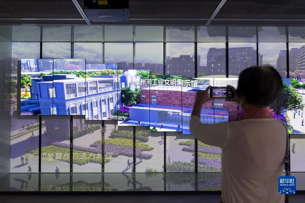 9月16日,在蘇州河工業文明展示館,參觀者拍攝未來蘇州河沿岸的規劃場景。