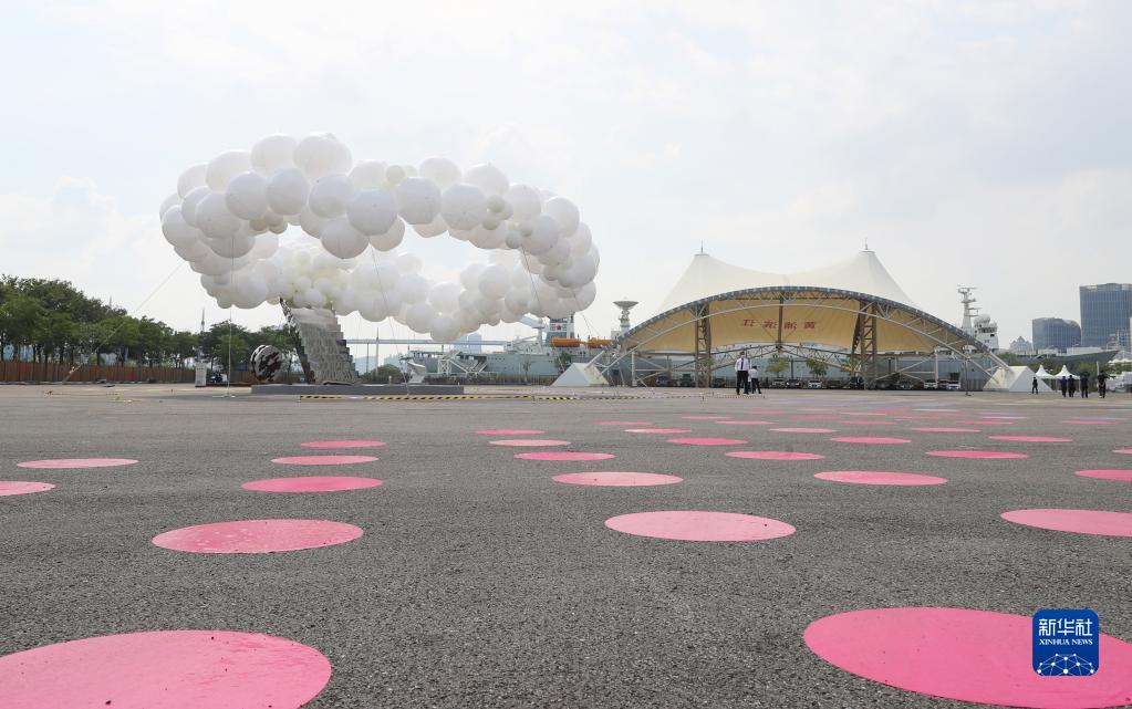 9月16日在大會中央廣場上拍攝的一個由200多個氣球組成的名為“設計之夢”的藝術裝置作品。
