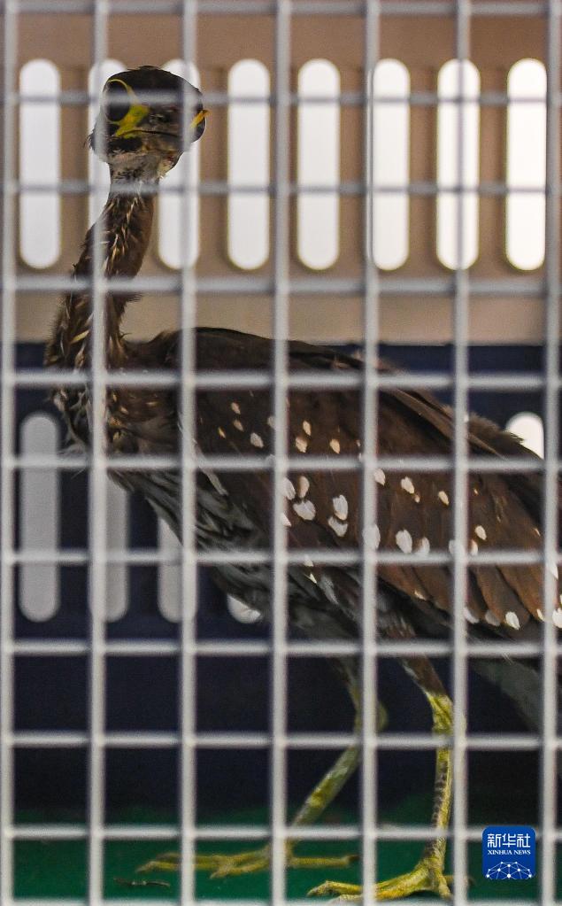 9月16日,傷愈的海南鳽在清遠(yuǎn)長(zhǎng)隆國家級(jí)世界珍稀野生動(dòng)植物種源基地野生動(dòng)物救護(hù)中心等待接受放歸前的體檢。
