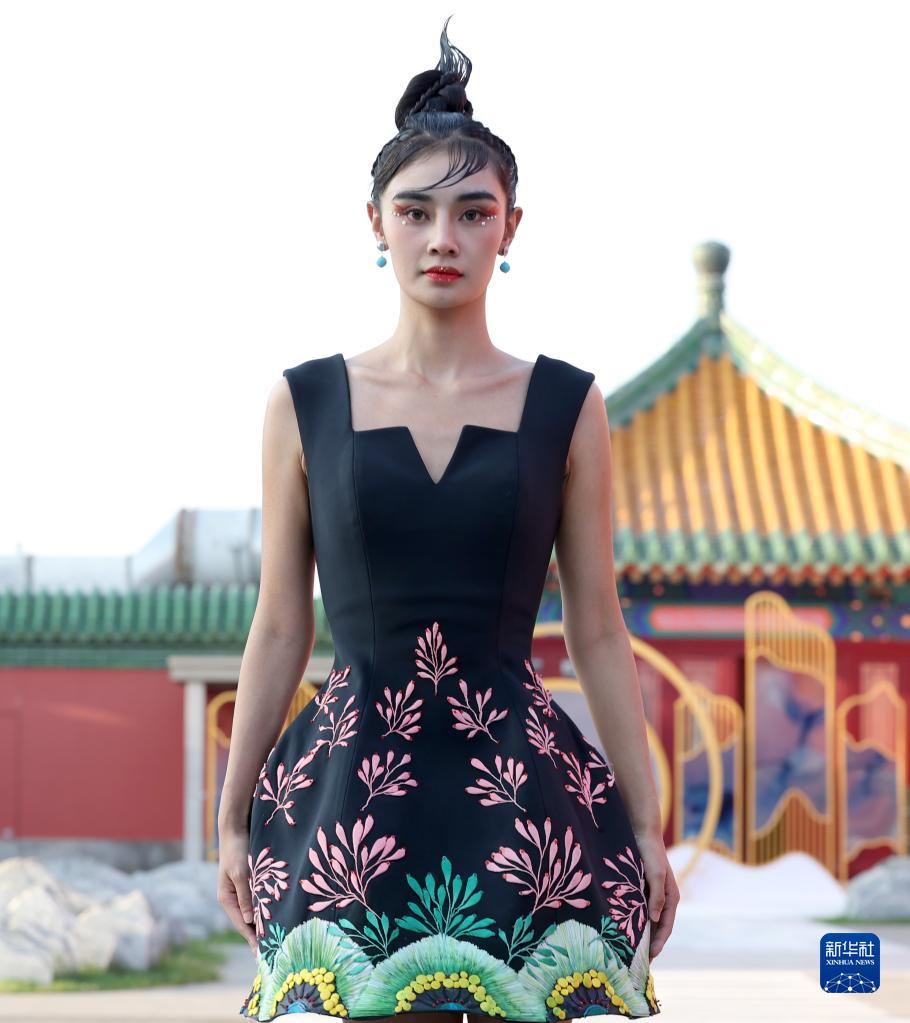 9月16日,模特在2022北京時裝周“劉薇非遺作品大賞”時裝秀上展示知名時裝設計師劉薇設計的時裝。