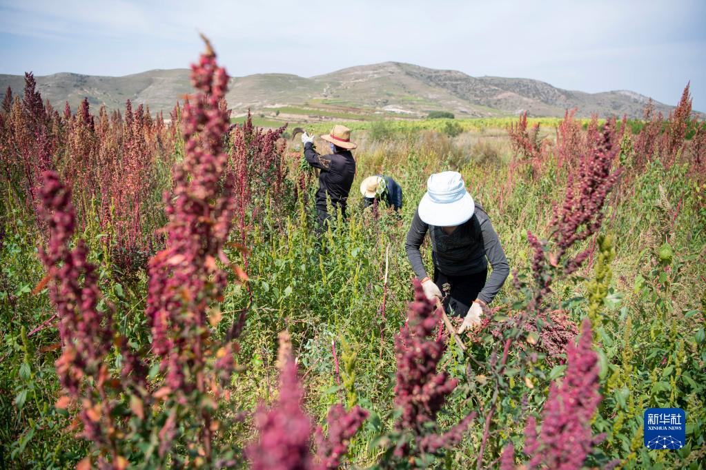 在靜樂縣娘子神鄉南舍村,村民在田間收割藜麥(9月16日攝)。