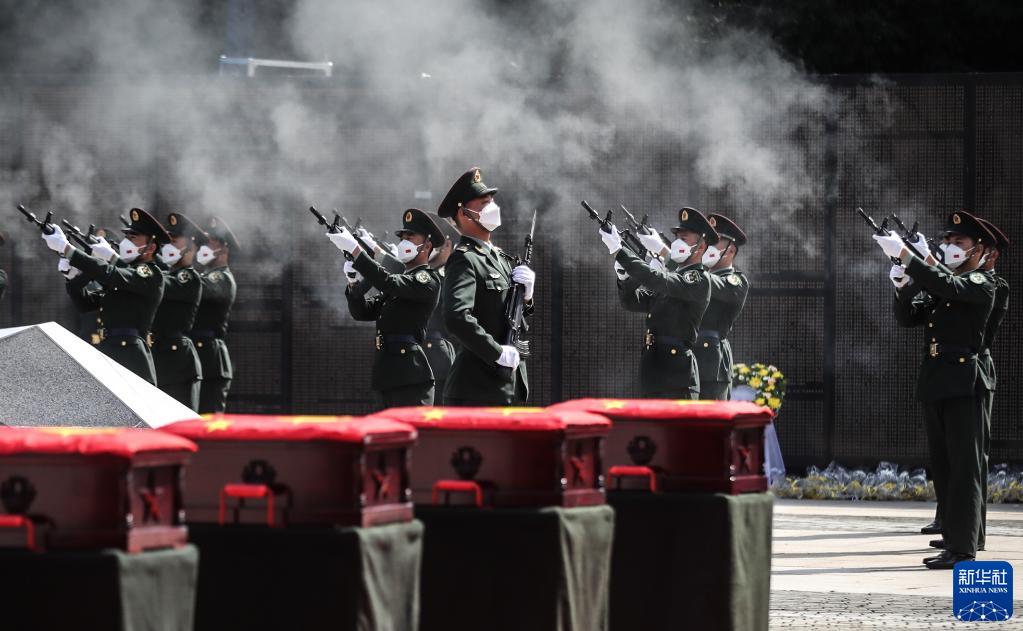 當日,第九批在韓中國人民志愿軍烈士遺骸安葬儀式在沈陽抗美援朝烈士陵園舉行,88名為國戰斗犧牲在異國他鄉的志愿軍英烈在祖國的大地上安息。