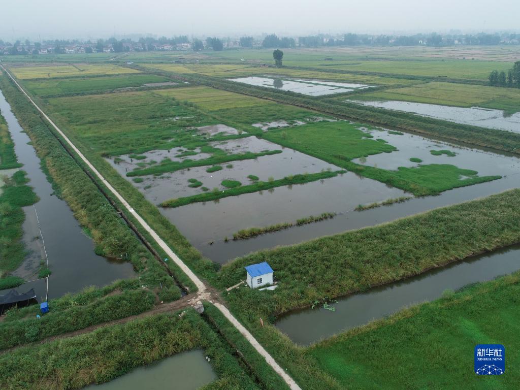 9月15日拍攝的漢中市洋縣馬暢鎮一處稻漁綜合種養基地(無人機照片)。