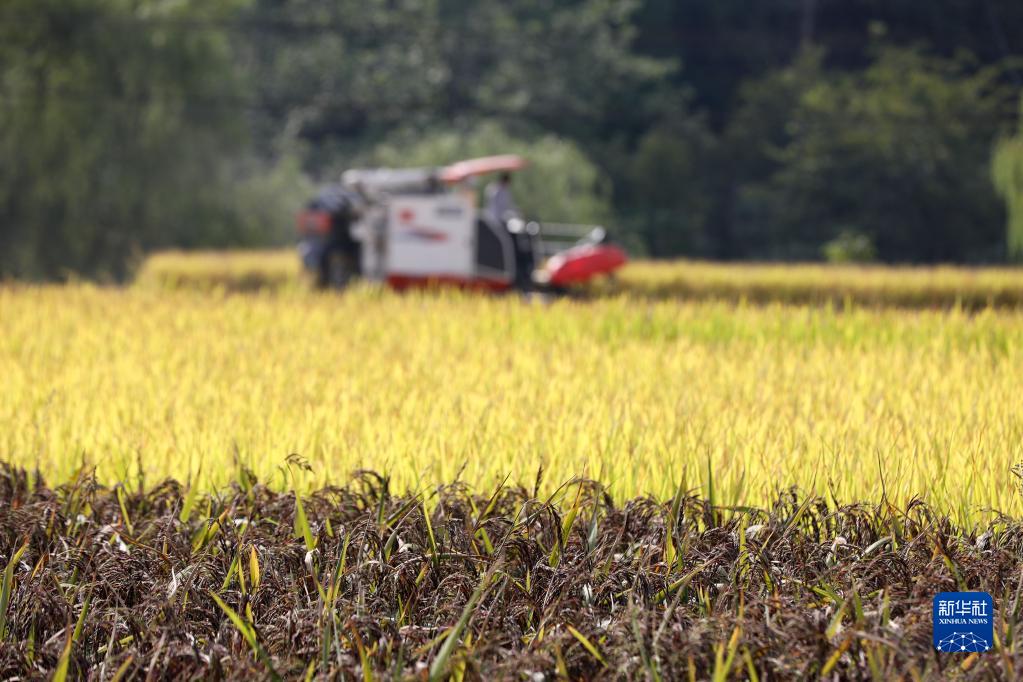 9月17日,村民在貴州省貴陽市開陽縣禾豐鄉馬頭村收割水稻。