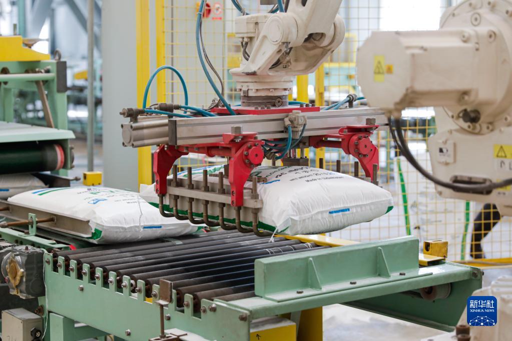 這是8月18日在烏茲別克斯坦納沃伊市拍攝的納沃伊氮肥股份公司聚氯乙烯生產(chǎn)線。